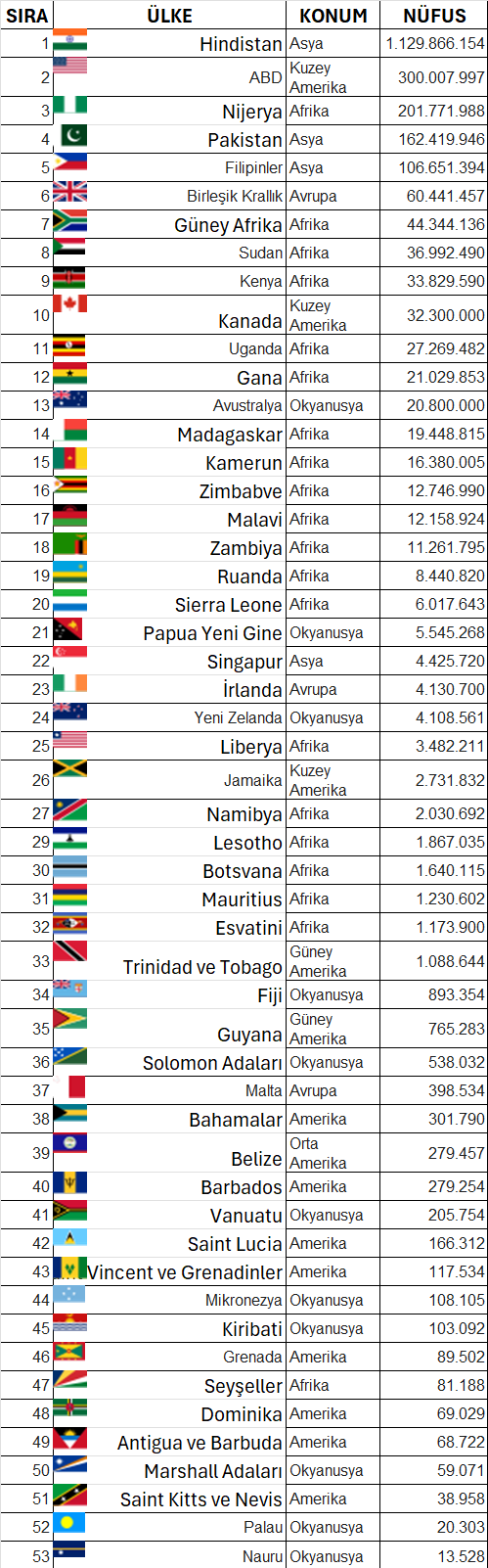 İNGİLİZCE KONUŞULAN ÜLKELER